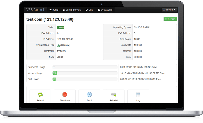 云途主机为用户提供强大的控制面板来管理虚拟服务器。您可以使用基于图形用户界面的网络控制面板重启VPS、重新安装操作系统、连接串行控制台、以及查看带宽图表。