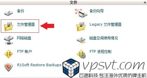 1、登录cPanel。找到文件版块,点击“文件管理器”进入(如图1所示)。