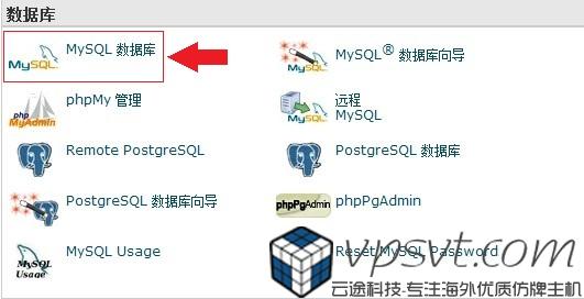 首先,登录自己的cpanel控制面板,找到”mysql数据库“,点进去。