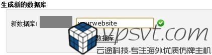 点进去后,找到”生成新的数据库“ 。在这里,创建新的数据库,前面的部分为你的cpanel账号,在后面填上你要新建数据库的名字,可以是你的网站域名,这样方便知道是哪个网站的数据库,方便管理。