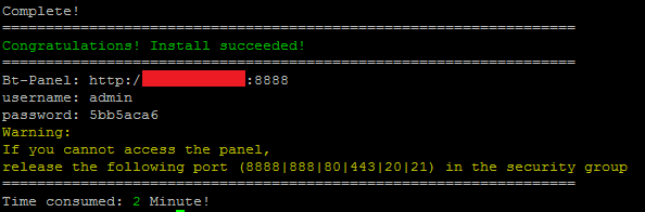 完成后输出管理页面地址以及账户、密码