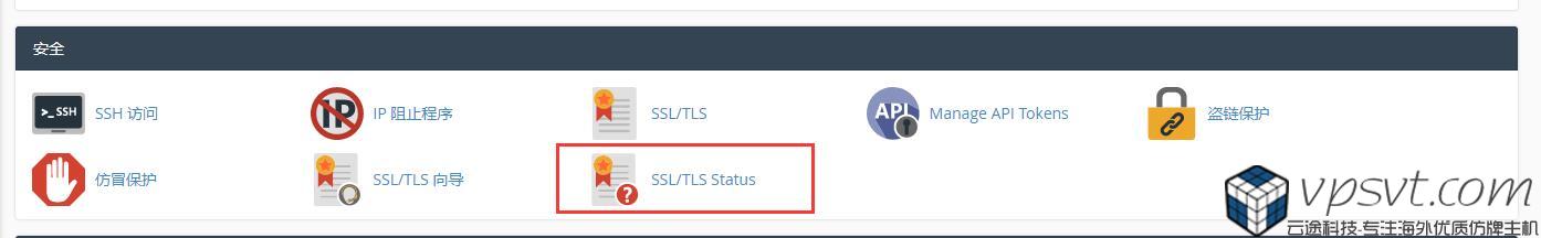 1、登录我司cpanel 服务器面板,然后选择: ssl/TLS Status