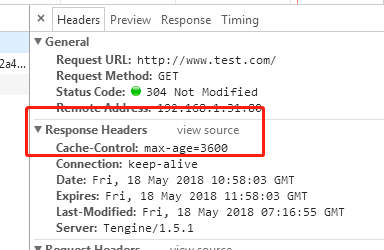 4.有缓存配置之后:在响应报头中存在max-age=3600 也就是1个小时有效时间