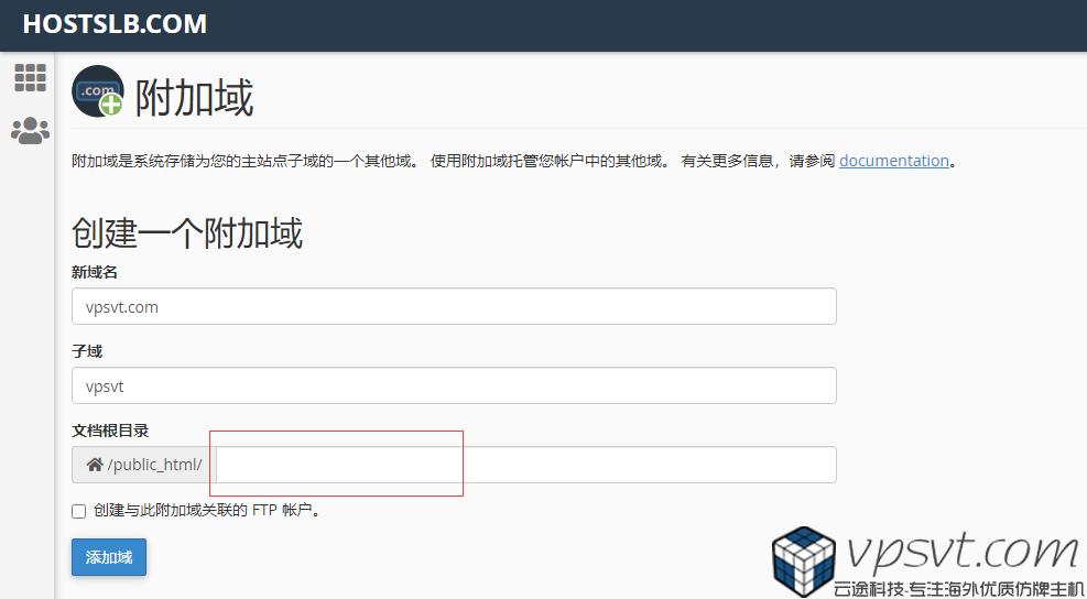 相反如果主站文件存放路径是 public_html/domains.com  ,则需要将新域名的路径改成 public_html/domains.com。