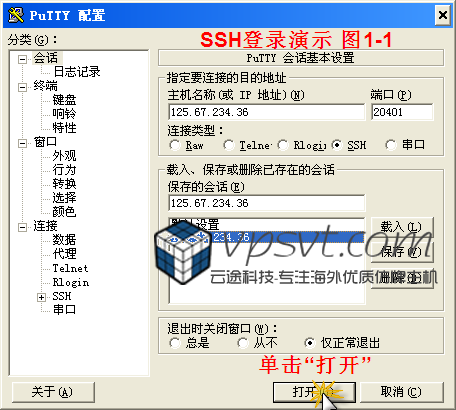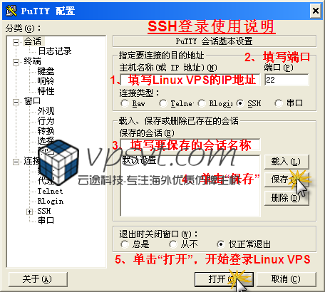 以下是使用putty 登录linux vps进行远程(ssh)管理 的图片教程: