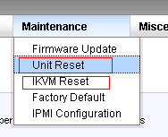如上图所示,通过点击 Unit Reset 在这个子页面中点击确定就可以重置IPMI系统,相当于重启一下IPMI这个设备。
