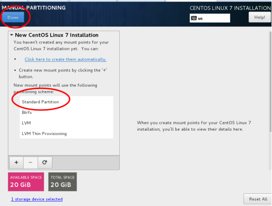 新挂载点使用以下分区方案:标准Standard Partition