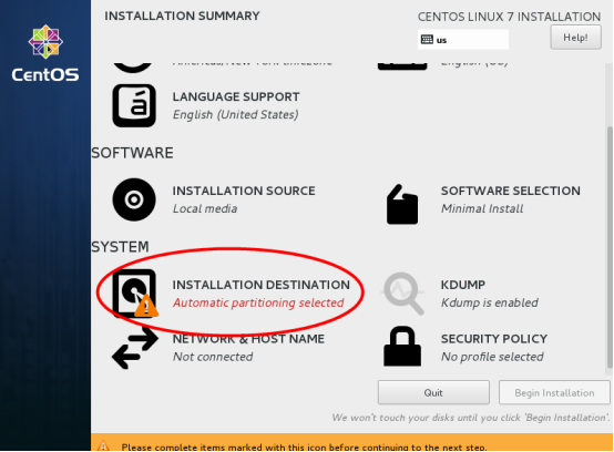 选择-系统SYSTEM-安装位置INSTALLTION DESTINATION,进入磁盘分区界面