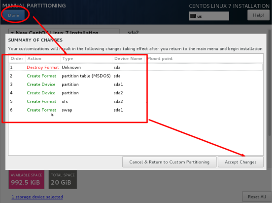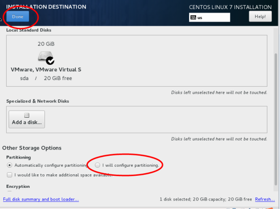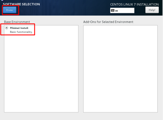 设置好最小化安装后,点击下图红框部分,修改操作系统主机名,然后点击done完成主机名配置: