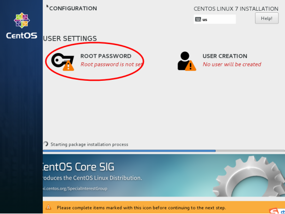 选择-用户设置USER SETTINGS-root密码,进入下面的界面